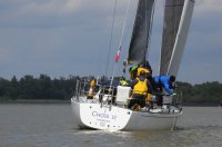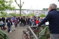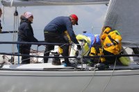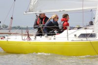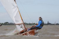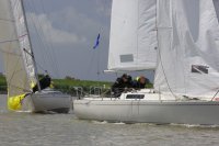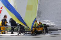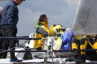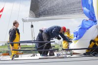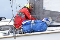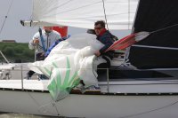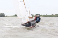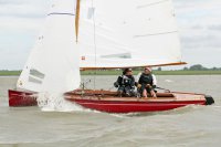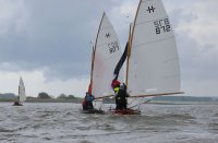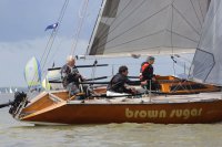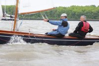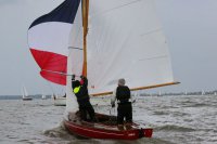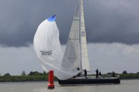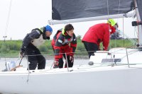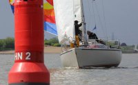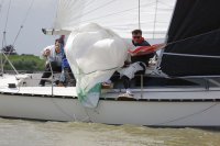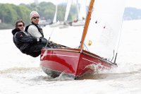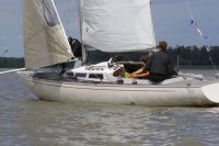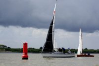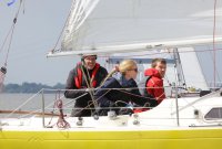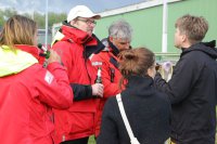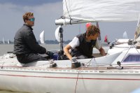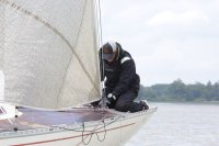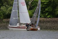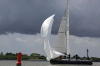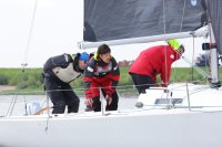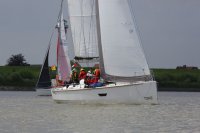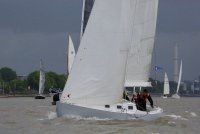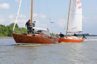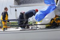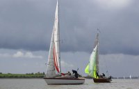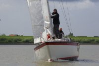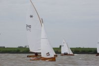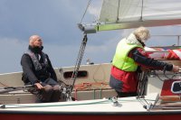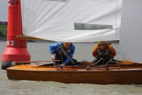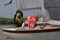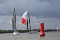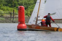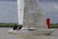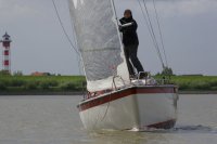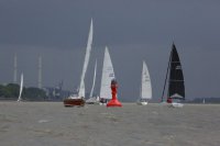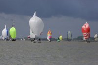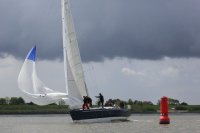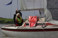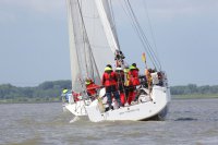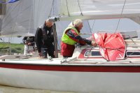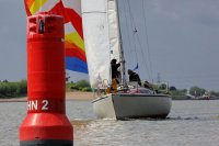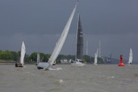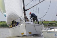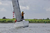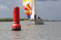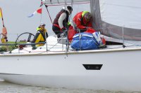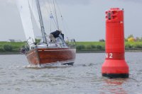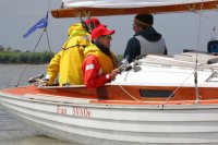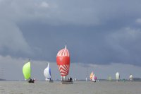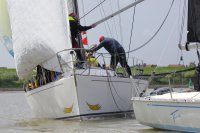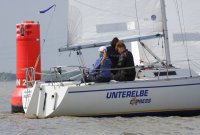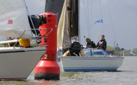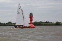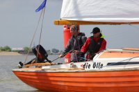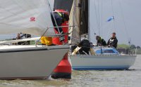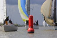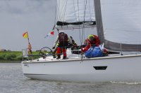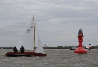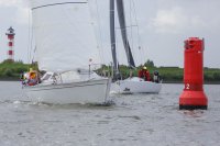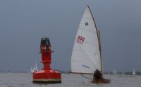 Pünktlich konnte die erste Wettfahrt gestartet werden und die Segler kreuzten elbab. Dann aber passierte es an der Wendemarke, der Tonne 116. Eine H-Jolle kenterte in einer Halse. Bedingt durch die Bergungs- und Sicherungsmaßnahmen konnte die zweite Regatta erst mit Verspätung gestartet werden. Leider schafften es die letzte Boote dann bei stark abnehmenden Winden nicht mehr, von der Wendemarke hinter Hanskalb gegen die Tide zu kreuzen und mussten die Wettfahrt abbrechen.